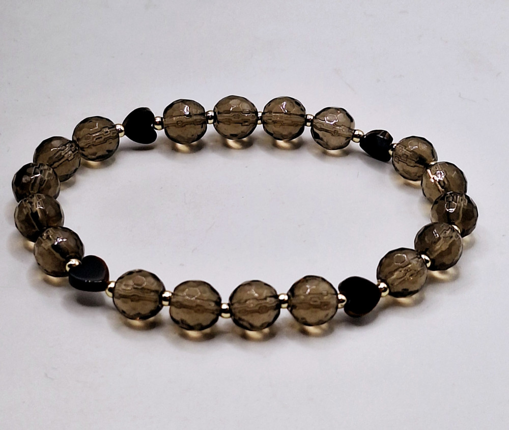 ааторская модель выполнена из раухтопаза( дымчатого граненого кварца) ,бусины 8мм,сердечек из тигрового глаза,проставки из гематита,фурнитура латунь( замок лобстер и удлинитель) 45см. возможно изготовление других размеров под заказ колье 360р браслет 160р на фото 18р возможно изготовление других размеров