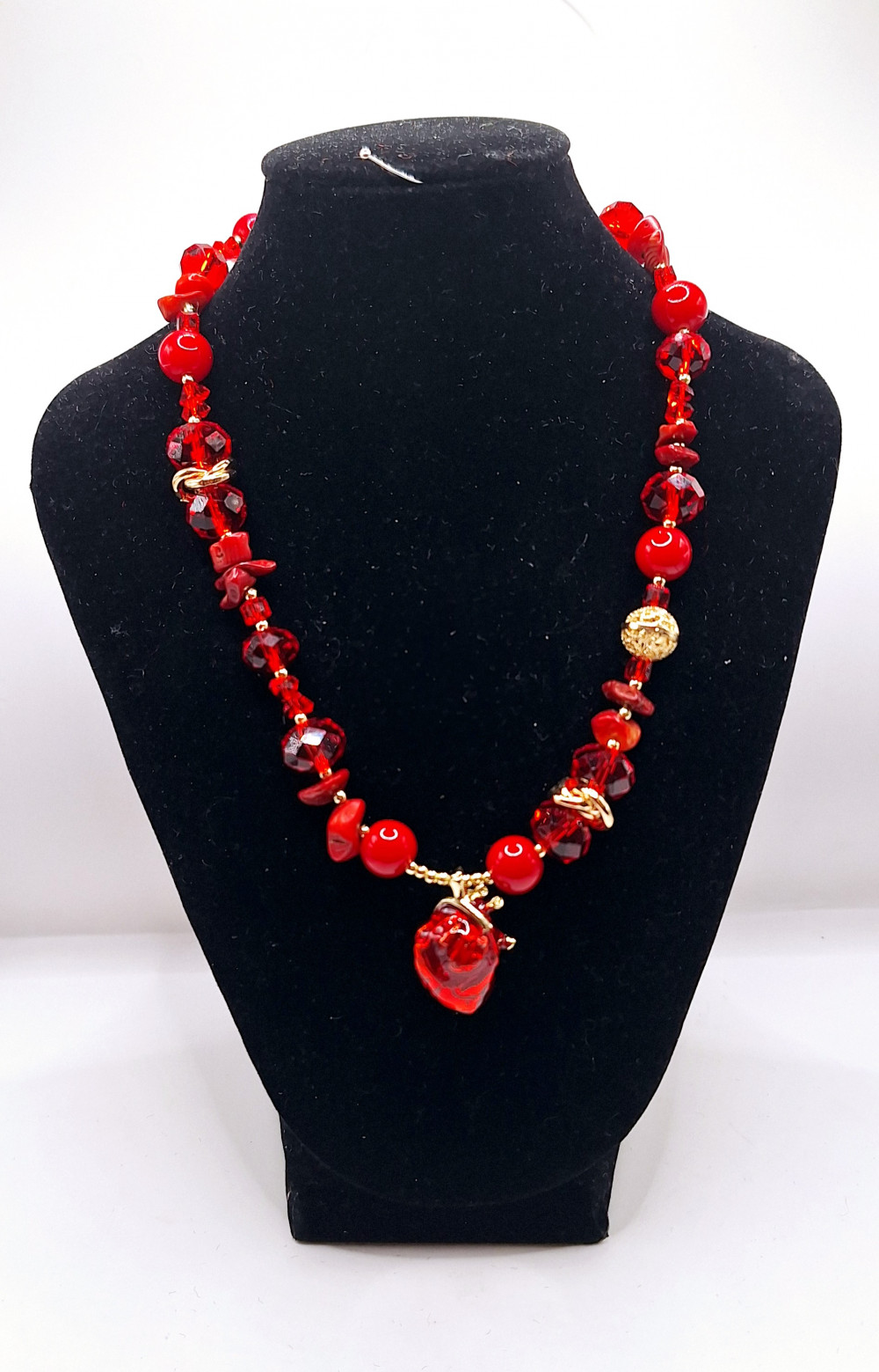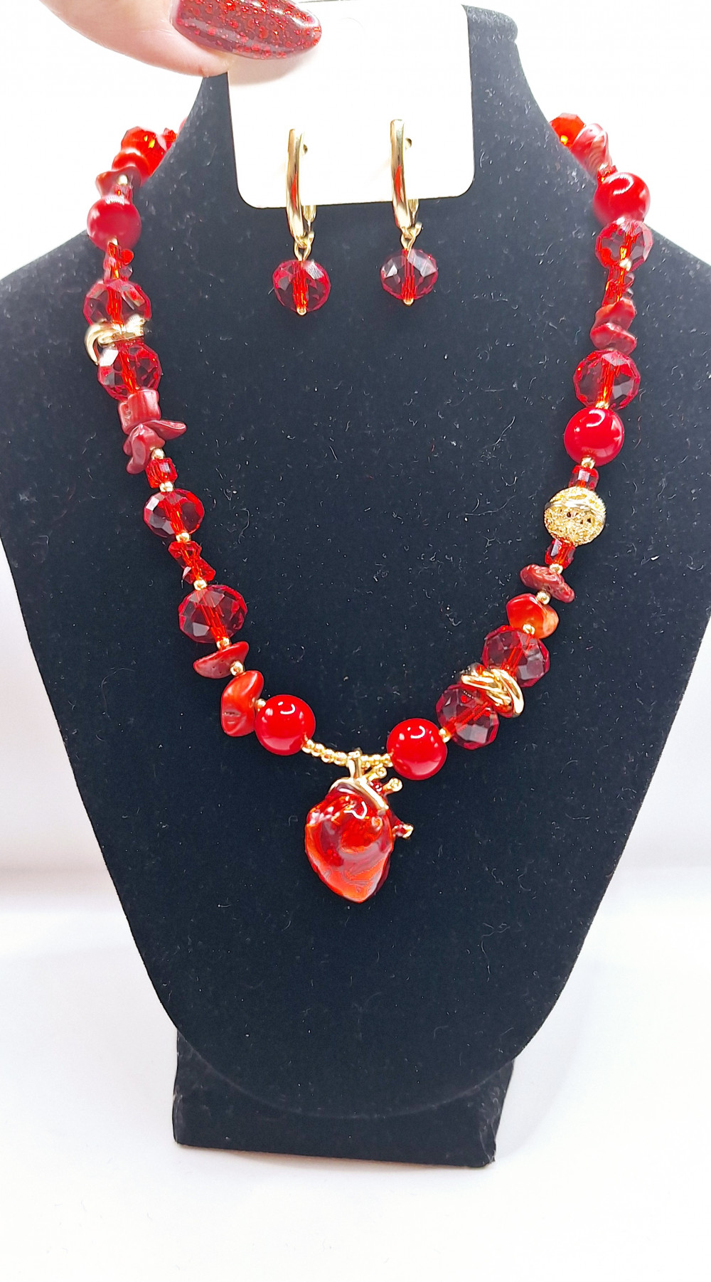 колье из хрустальных бусин 10 и 12мм,коралла в бусинах 10мм и крошке,гематита. Вся фурнитура латунь. В комплект можно добавить серьги. Подвес " анатомическое сердечко" 2.5см-брошка с петлей.Можно носить отдельно.
