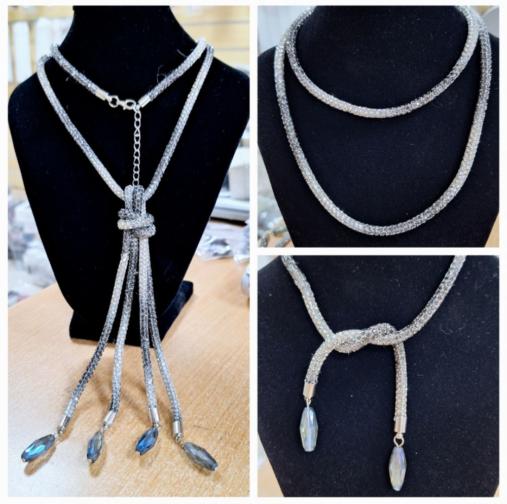 Главная / Каталог товаров / Украшения на шею / Колье с цепями, бисерные, жемчужные, хрустальные / Колье-трансформер белое